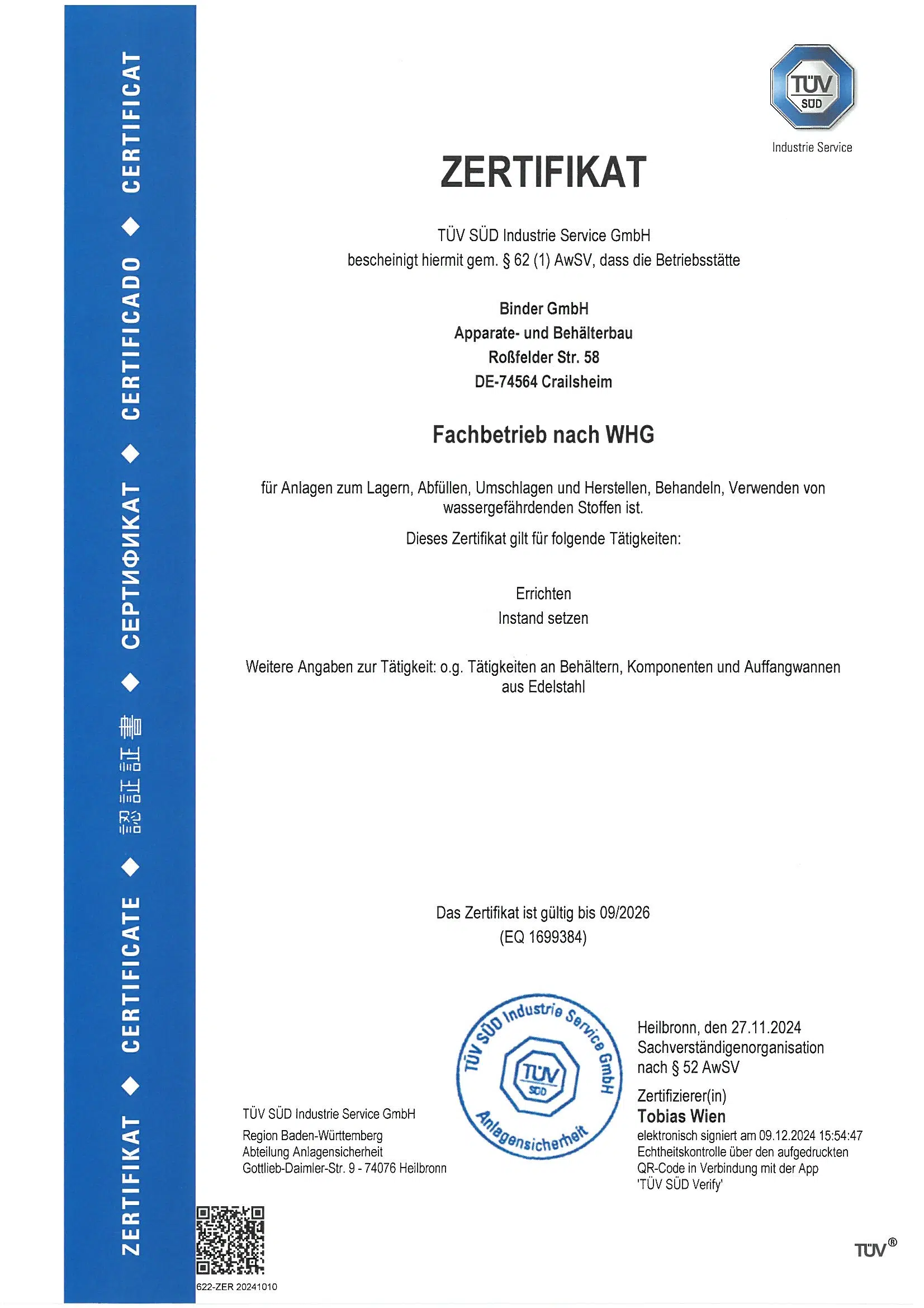 Specialized company according to WHG (Water Resources Act)